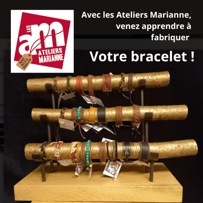 - Jeudi 30 novembre de 11h00 à 14h00 : Atelier de fabrication de bracelet en cuir – Animé par Les Ateliers Marianne